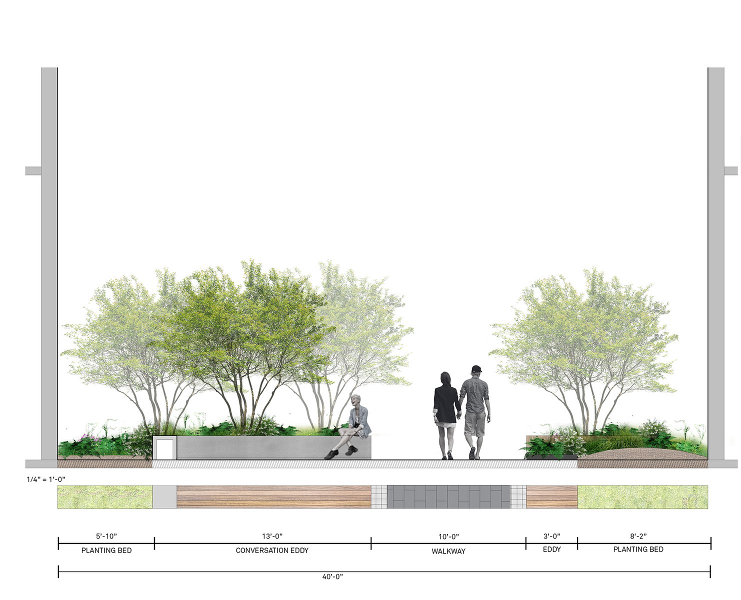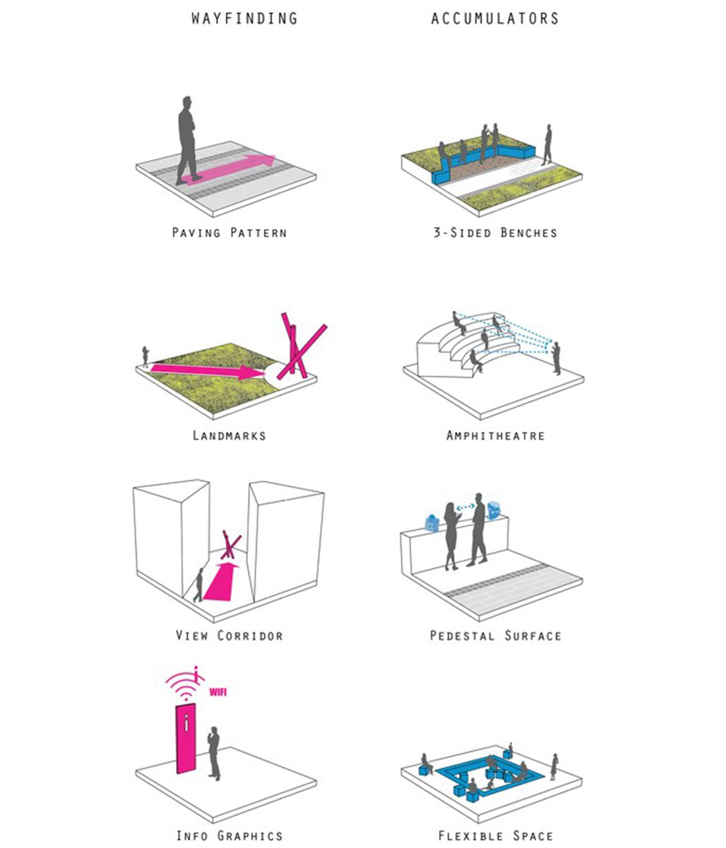 Future Green’s master plan for the 6th Street Development at Gallaudet University, the Washington, D.C. campus of the nation’s premier institute of higher learning for the hearing-impaired, creates a system of connective, mixed-use corridors and vibrant destinations, knitting the historically isolated campus into the fabric of its neighborhood. Mindfully interpreting DeafSpace Design Guidelines, such as maintaining clear sight lines with prominent wayfinding landmarks, we distilled our design into an adaptable and sustainable kit of parts to shape the project’s open space and streetscape. Winner of a Potomac ASLA Honor Award for Analysis, Planning, and Urban Design, the plan will continue to evolve throughout the design process through construction. Engagement efforts included a series of interactive, graphically-clear playing cards that were shared with stakeholders during interactive planning sessions in order to engage users through a tactile and visual medium. standards intended to create an authentic and engaging destination, easily accessible to all. The master plan was delivered in April 2015 and subsequently received PUD approval.