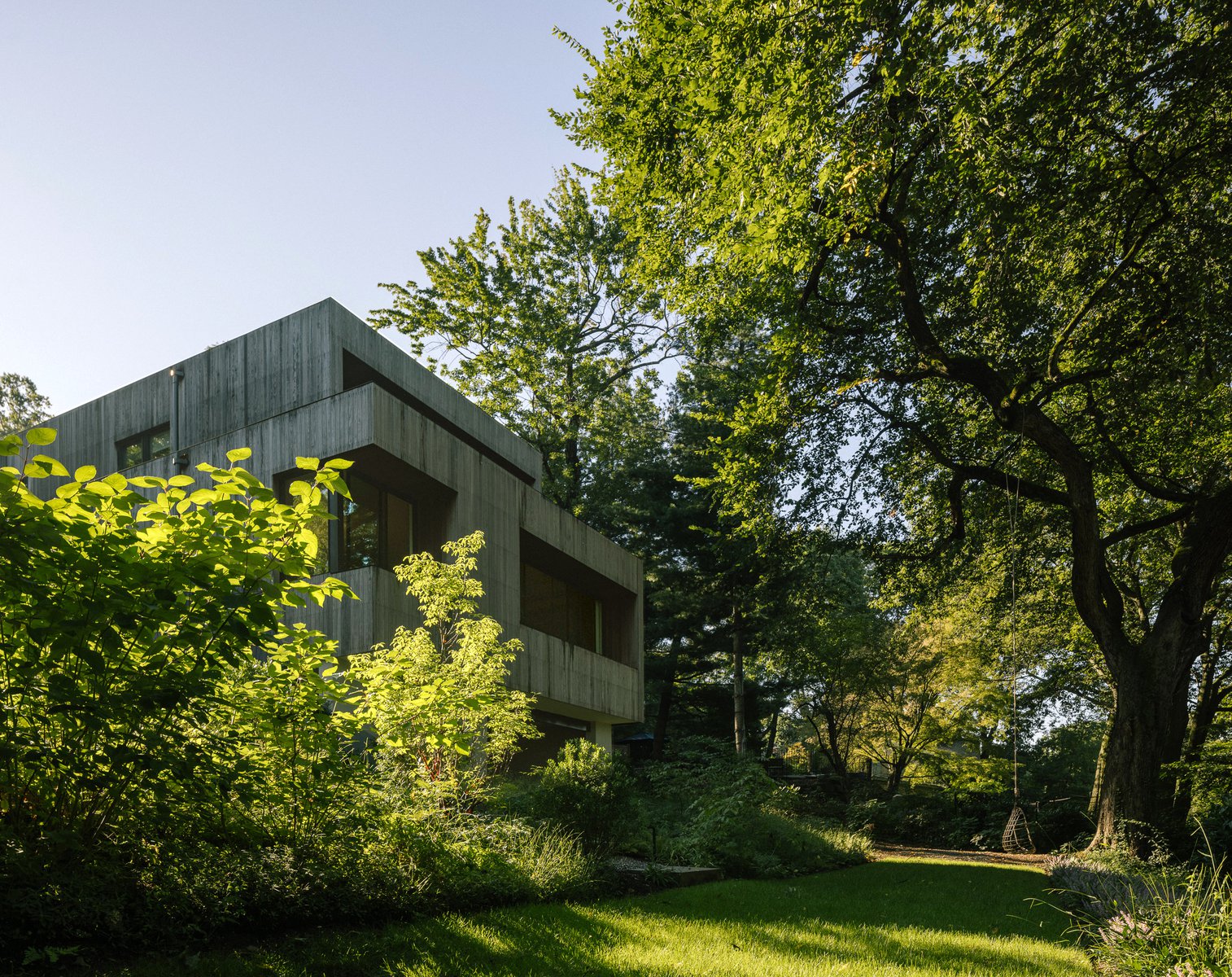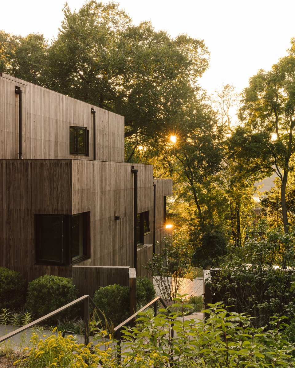 Pinecrest House, winner of the 2024 Architizer A+ Special Mention Award, is a private residence located in Hastings-on-Hudson, designed in collaboration with Jacobschang Architecture. Nestled on a hill that rises toward the street and descends into a serene, wooded area adjacent to the Croton Reservoir Trail, the home offers stunning views of the Palisades and Hudson River, framed by the mature tree canopy surrounding the property.