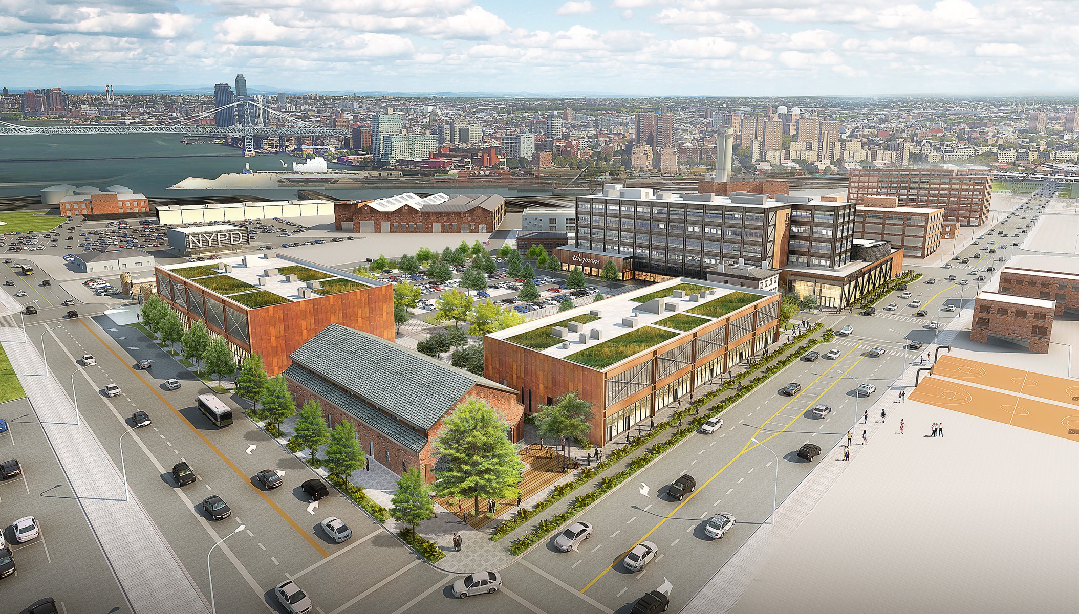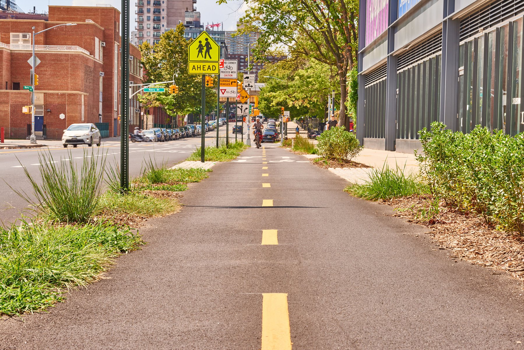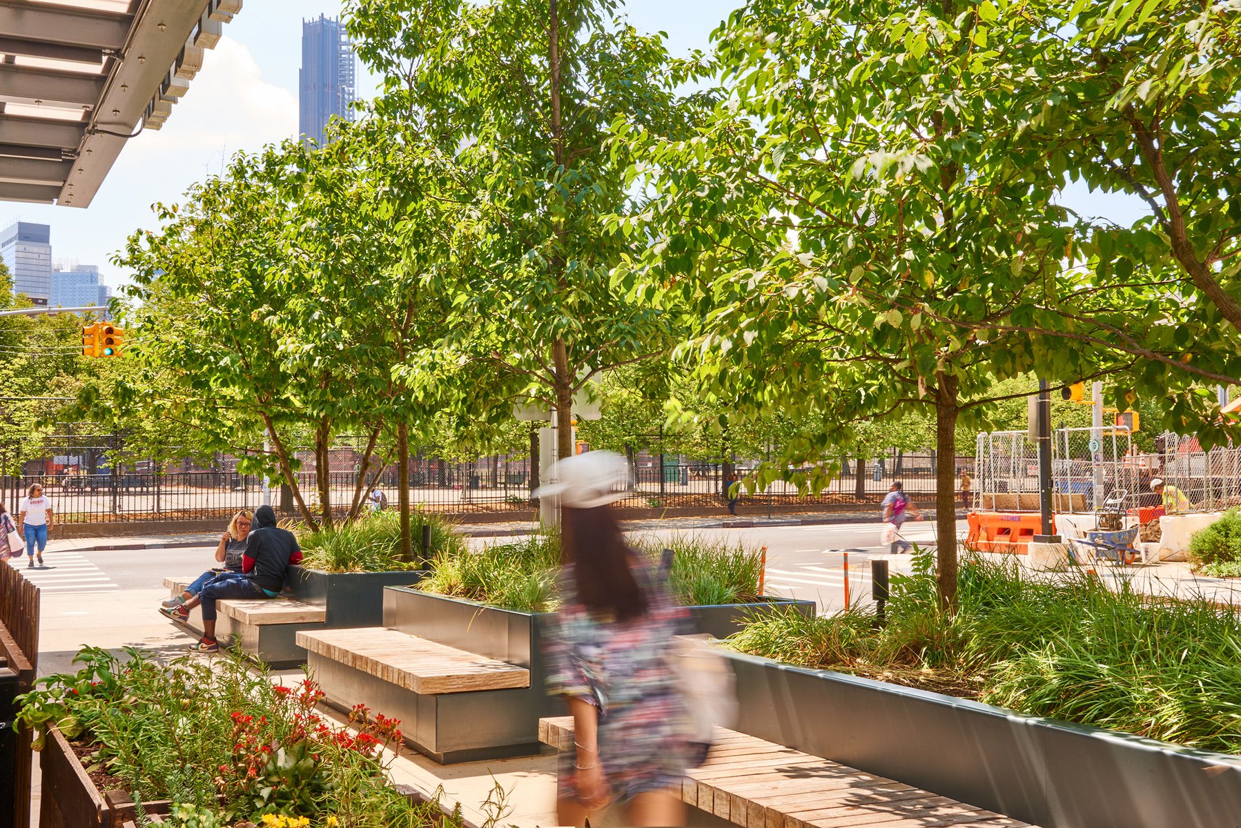 Admiral’s Row – a historic stretch of officer housing in the Brooklyn Navy Yards dating back to the Civil War – has been derelict and closed to the public for nearly half a century. As part of the ongoing renewal and reuse of the Navy Yards for commercial and light industrial development, Future Green had the opportunity to reimagine this landscape for public access, embedding historic and contemporary details into newly-crafted public plazas across this 7-acre site. In response to the site’s location within the FEMA flood zone, Future Green developed a diverse palette of native plants and rugged ‘pioneer species’ able to tolerate the high-salt, high-traffic setting; sophisticated systems below-ground capture and redirect parking-lot stormwater away from the East River and Upper New York Bay. Newly planted flowering trees, including a historic Magnolia cultivar, tie into the beloved Old-World streetscape of nearby historic Brownstone Brooklyn.