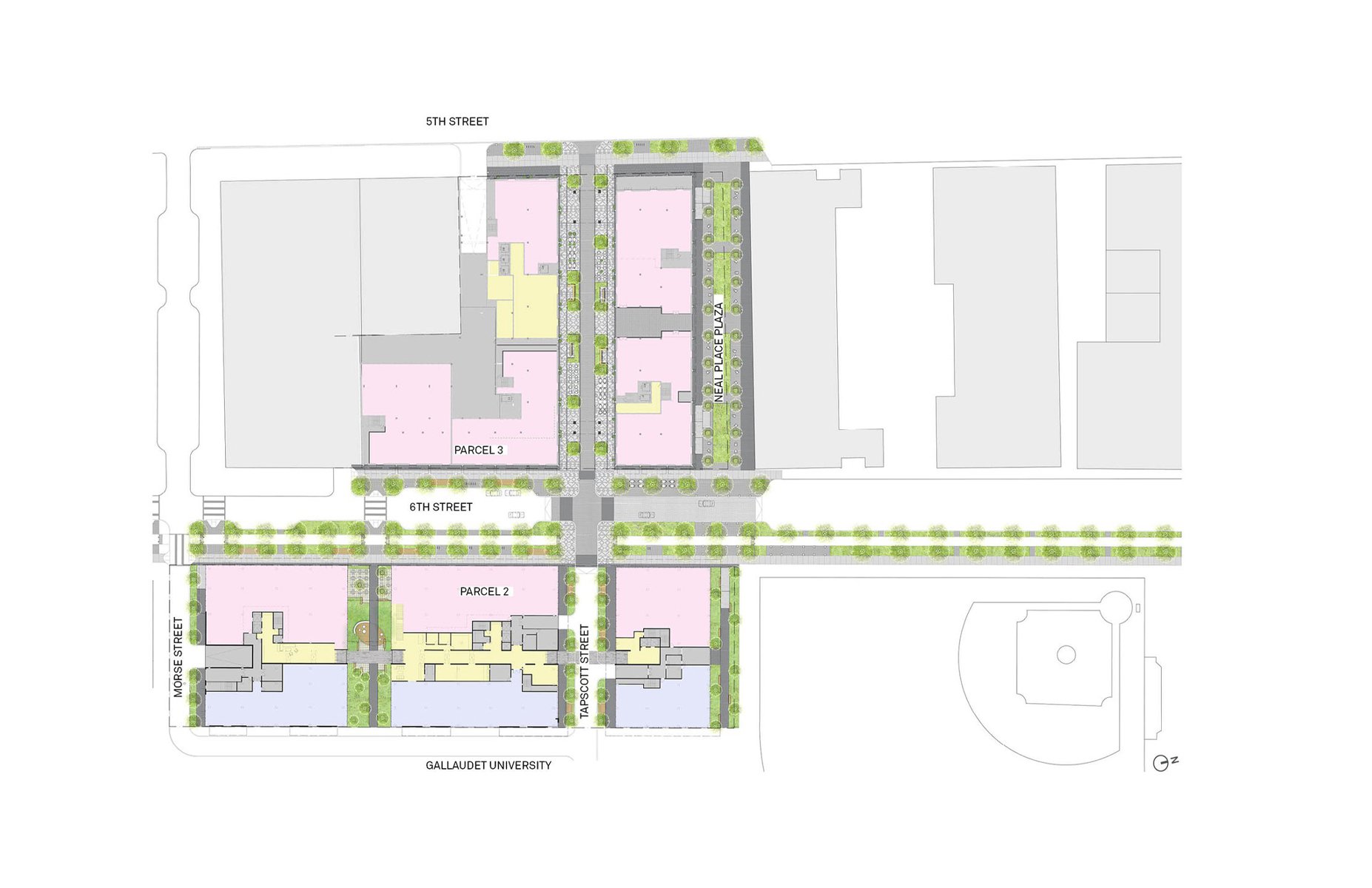 Future Green’s master plan for the 6th Street Development at Gallaudet University, the Washington, D.C. campus of the nation’s premier institute of higher learning for the hearing-impaired, creates a system of connective, mixed-use corridors and vibrant destinations, knitting the historically isolated campus into the fabric of its neighborhood. Mindfully interpreting DeafSpace Design Guidelines, such as maintaining clear sight lines with prominent wayfinding landmarks, we distilled our design into an adaptable and sustainable kit of parts to shape the project’s open space and streetscape. Winner of a Potomac ASLA Honor Award for Analysis, Planning, and Urban Design, the plan will continue to evolve throughout the design process through construction. Engagement efforts included a series of interactive, graphically-clear playing cards that were shared with stakeholders during interactive planning sessions in order to engage users through a tactile and visual medium. standards intended to create an authentic and engaging destination, easily accessible to all. The master plan was delivered in April 2015 and subsequently received PUD approval.