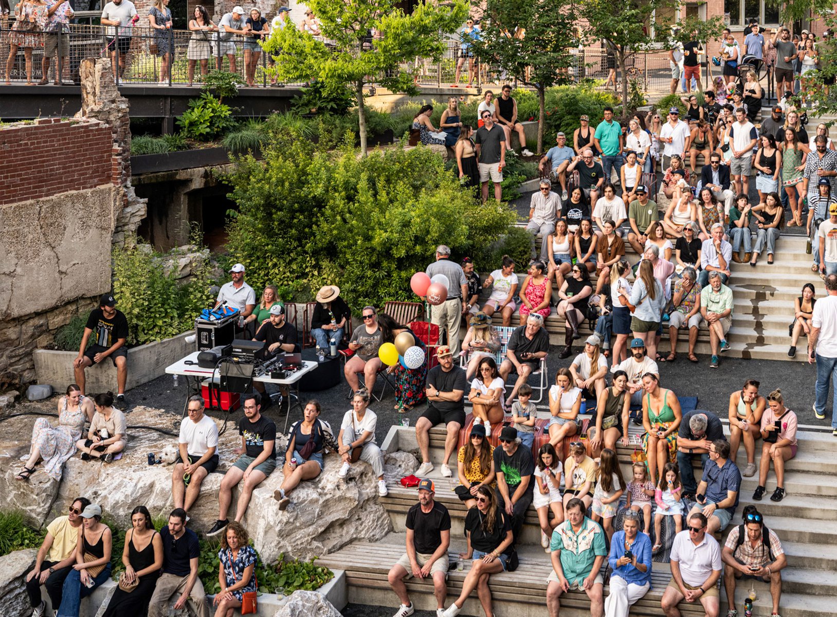 Circulation across the site will be a nod to historic hill towns - steep topography to negotiate, varied scale of open spaces and passage ways between buildings, and lookouts to the river beyond, on which the site’s history will be revealed as traces across the landscape. The open spaces will be framed garden rooms that will each exude its own identity. Existing concrete slabs once hand-chiseled for livestock hoof traction will be salvaged as specialty pavers. Cues from the forgotten, overgrown, and wild planting are interpreted and expressed as gestures throughout the site to maintain the ethos and authenticity of being a found landscape. Plants will cascade from facades, trace building columns, and grow from curated concrete slab gardens. Adams Street will be redefined as a curbless shared street with a pedestrian priority. Four landscaped and programed barges will be anchored at the foot of the site connecting the land with river life.