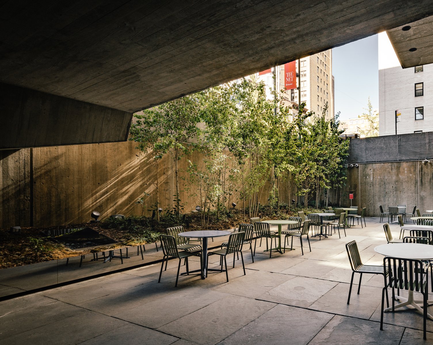 In collaboration with Vogt Landscape Architects, Future Green crafted a new landscape for the sunken courtyard of this iconic landmark museum by mid-century master Marcel Breuer. The sunken garden of The Met Breuer is envisioned as a diorama, drawing on two distinct forest typologies: the eastern forests of the Adirondacks and the supercolonies of Quaking Aspen that notably populate the western states. We installed dense stands of Aspen in the courtyard at varied sizes and forms, suggesting an intensification of a naturally-occurring phenomenon. Lowbush Blueberry groundcover brings a touch of softness and wildness to the Brutalist setting, and reinforces Breuer’s original plan for the placement of plantings in the historic courtyard. This restoration project won the prestigious Honor Award from the American Institute of Architects for its success in restoring Breuer’s vision.