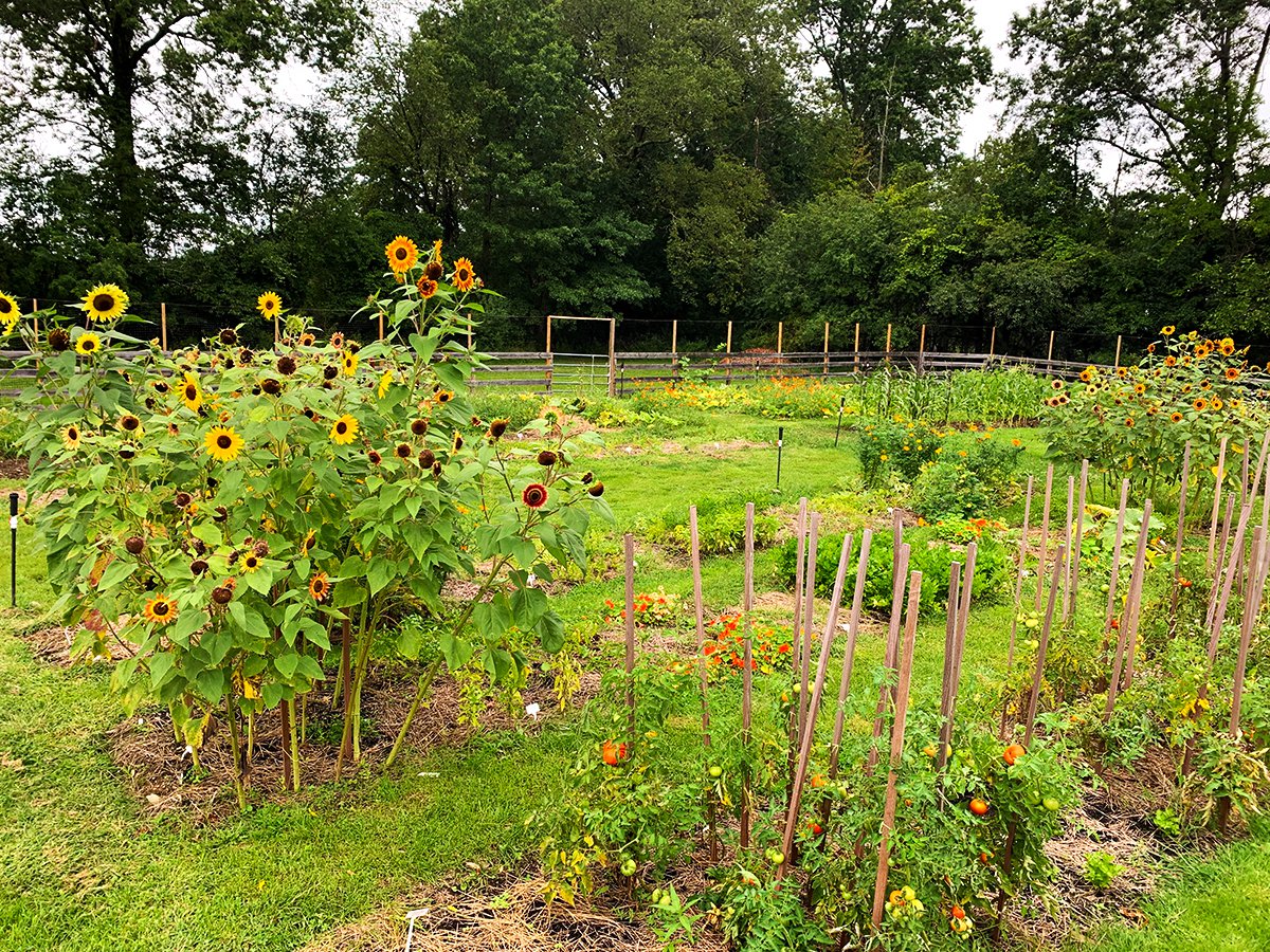 The farm features a vegetable garden, a growing orchard with apples, apricots, cherries, and pawpaw, a flock of chickens, and an on-site composting system which was established in 2024. The vegetable garden is organized into twelve 6’ x 45’ planting beds, which host seasonal native vegetables, herbs, sunflowers, and marigolds - planted in part to help deter pests naturally.