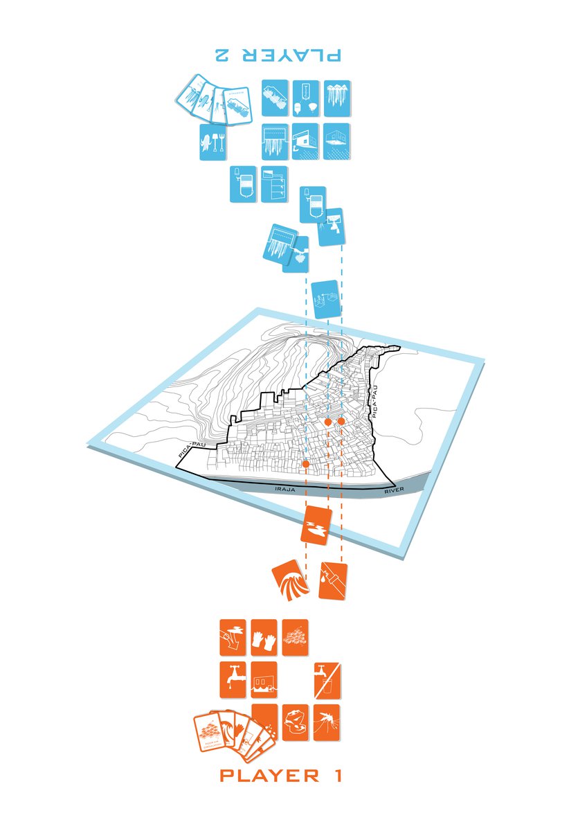 A set of Design Playing Cards profiles each infrastructural deficit and proposed systems, capitalizing on the modularity of sustainable technology to foster interaction between community and consultants.