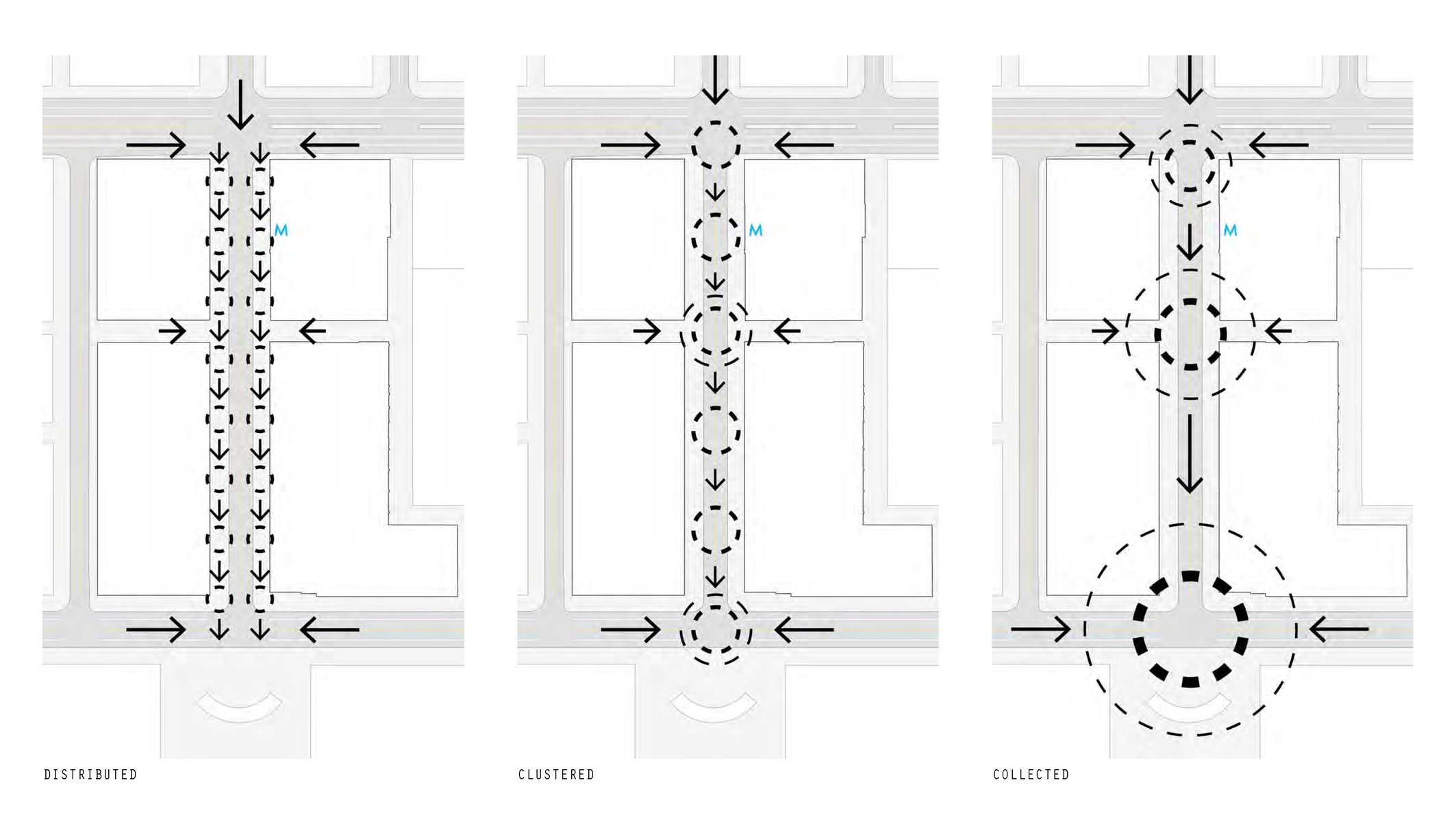 Precedents, such as the Rambla in Barcelona and Broadway in New York City, demonstrate that a carefully designed street is not merely a means of circulation, but a destination in itself. We’ve evaluated the circulation, adjacent uses, design features, and maintenance structure of successful great streets around the world. We are applying this research to our designs for two proposed streets in Washington DC: Neal Place adjacent to the Gallaudet University campus and Half Street leading to the Nationals baseball stadium. We are drawing on the history of transportation planning in DC, beginning with the L’Enfant plan, which established a grid crossed diagonally with grand avenues punctuated with public plazas. The design challenge in Half Street will be creating a curbless environment that feels safe, supports the adjacent retail, and accommodates the large crowd that gathers on game days. The design team is currently exploring several methods of directing and slowing vehicular traffic, integrating stormwater management, employing resilient vegetation, and organizing fixed and temporary program.